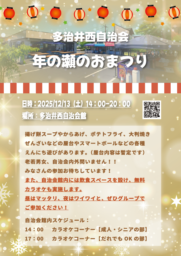 2025/12/13(土)14:00頃から20:00まで年の瀬のおまつりを開催します!